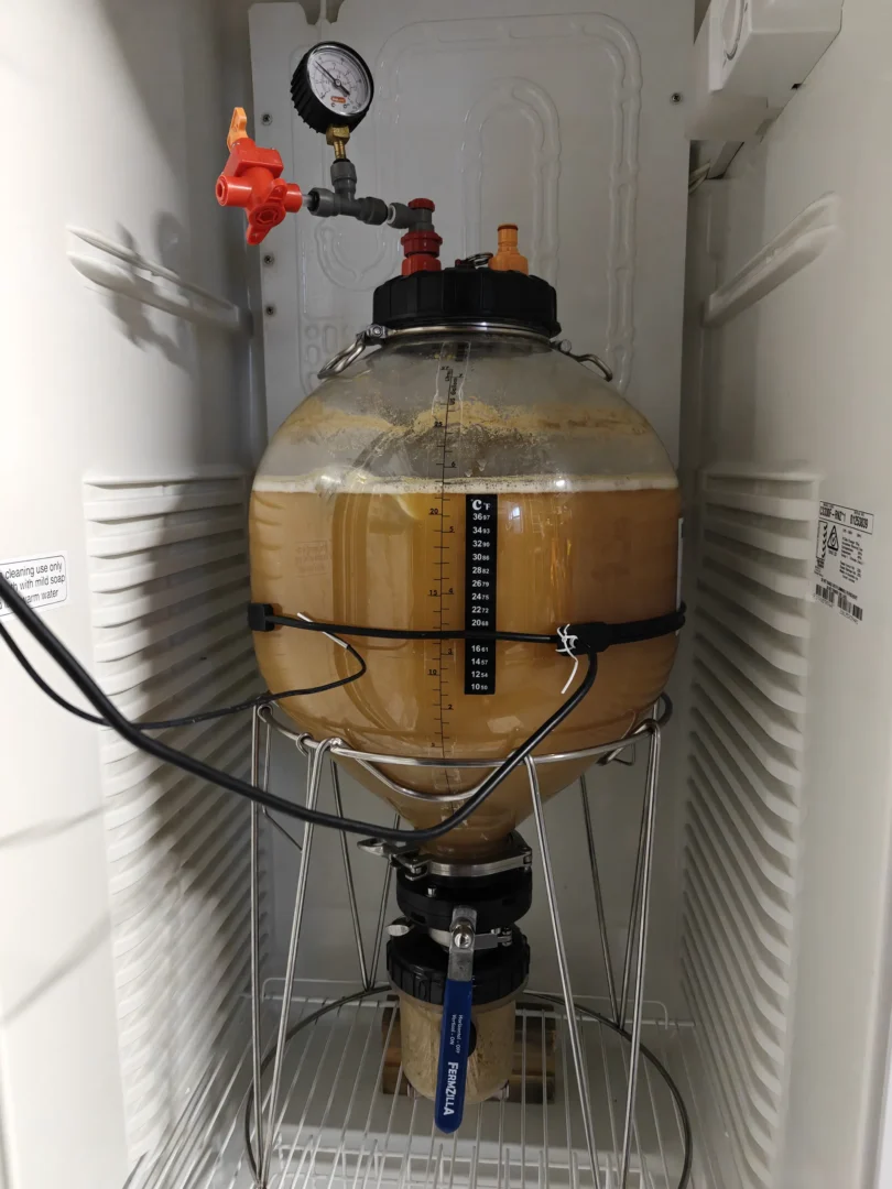 Total volume 23L in the fermenter at 18C, OG 1.071,