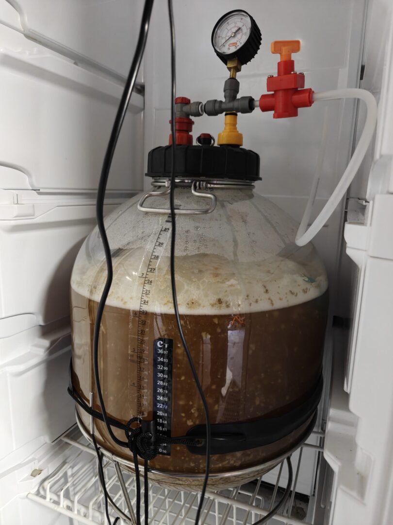 Signs of active fermentation within about 12 hours. Target set initially to 20.5C, raised to 21C after 24 hours, with cooling trigger set +4C (allowing a potential free rise to 25C before cooling kicks in).