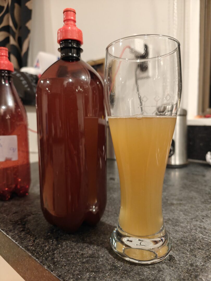 Bottled a sample for the monthly tasting + a glass. Shake carb in the bottle.
